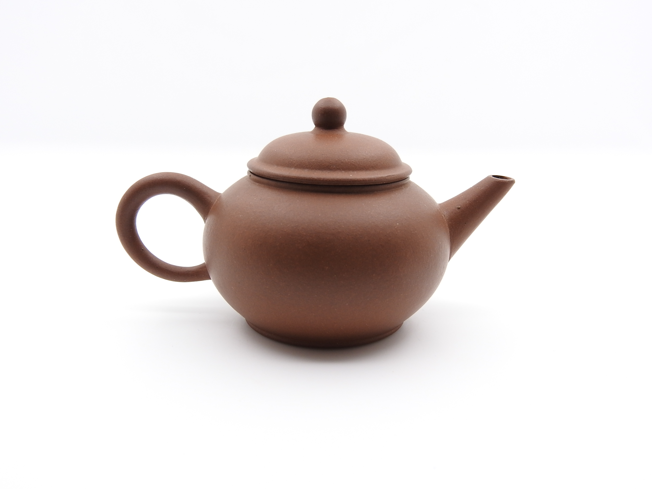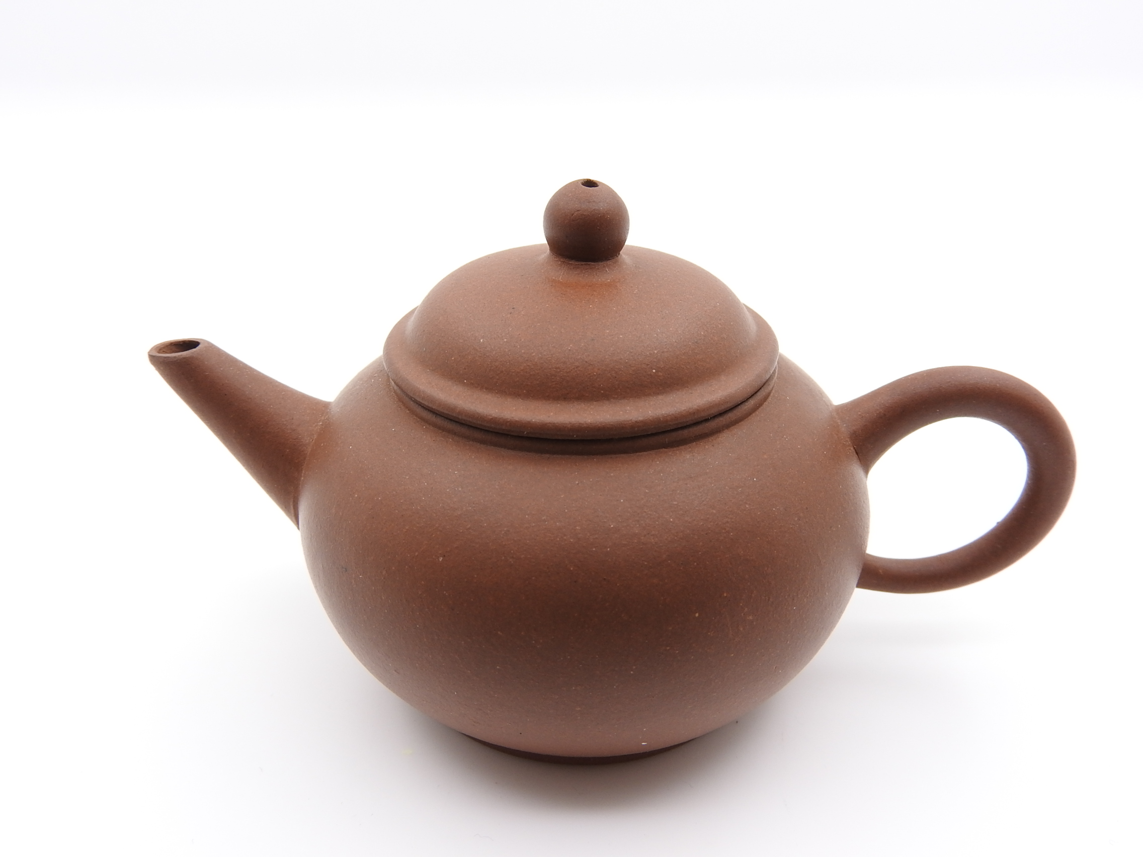 I have been using this teapot for some time; the clay is of good quality and has developed a nice shine. When you pour boiling water into the pot, the sheen becomes even more noticeable. The pot is brand new in the lightbox photos, while the last picture (taken in daylight) shows the teapot after some seasoning.